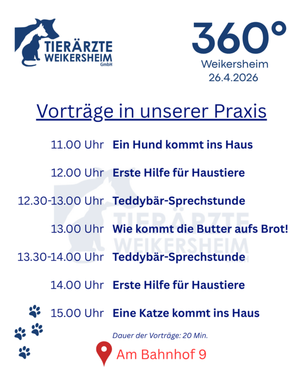 Jeden 1. Samstag im Monat um 09:00 Uhr hier in der Tierarztpraxis.
