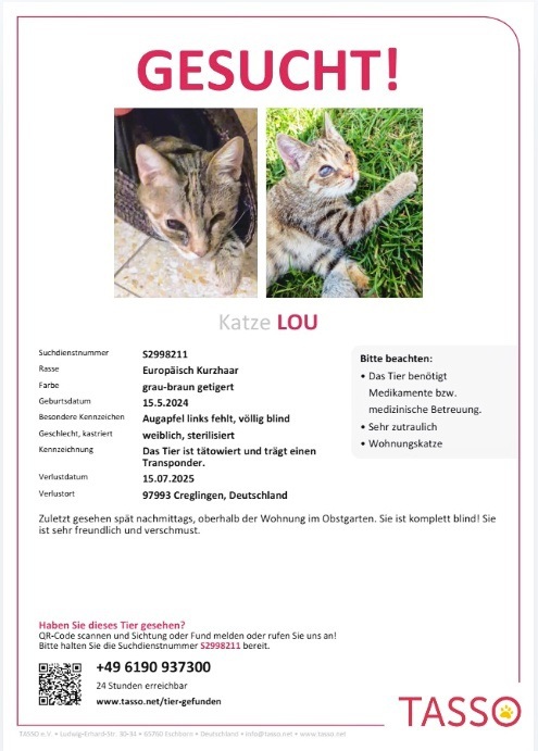 Sie vermissen Ihr eigenes Tier? Oder haben ein Tier gefunden?